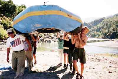 Unloading rafts at Bell Springs Road